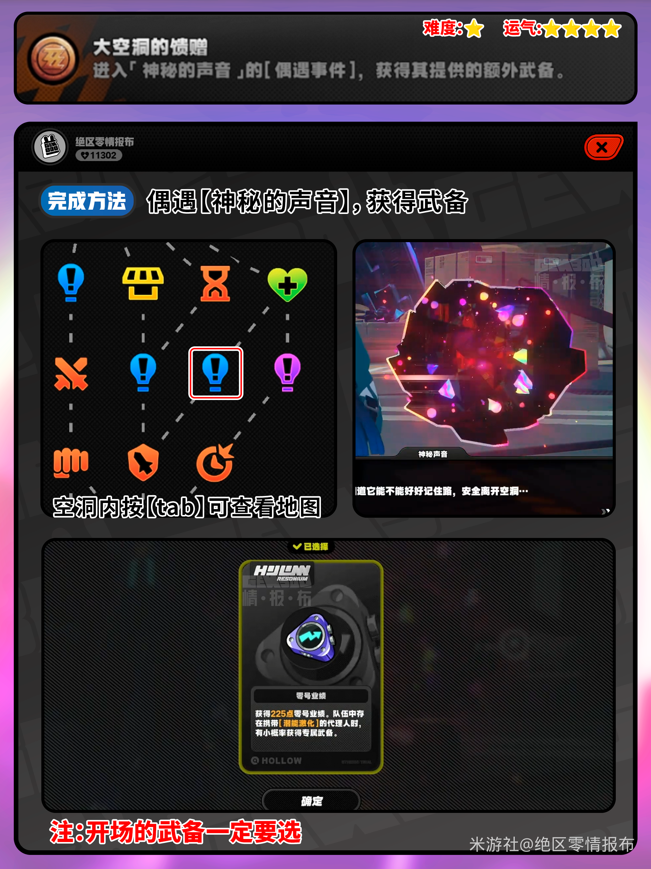就在最近绝区零更新1.6了版本的更新上线,本次版本上线了许多新内容,新地图,新角色,新活动等,在新的地图还有新的成就,那么有小伙伴好奇大空洞的馈赠成就怎么做,下面就来告诉大家。 绝区零大空洞的馈赠成就攻略 完成方法 偶遇【神秘的声音】,获得武备 本文内容来源于互联网,如有侵权请联系删除。
