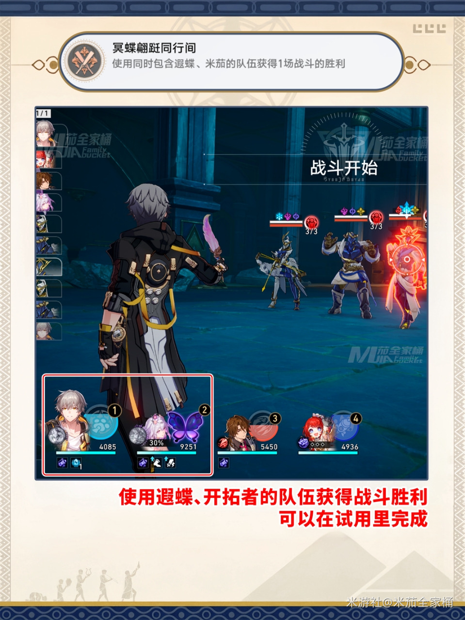 就在最近崩坏星穹铁道终于上线了3.2版本给我们带来新冒险,这次版本更新还上线了许多新内容,有新遗器,新地图,新角色,还有新成就,那么有小伙伴好奇冥蝶翩跹同行间成就怎么做,下面就来告诉大家。 崩坏星穹铁道冥蝶翩跹同行间成就攻略 冥蝶翩跹同行间 使用遐蝶、开拓者的队伍获得战斗胜利可以在试用里完成 本文内容来源于互联网,如有侵权请联系删除。