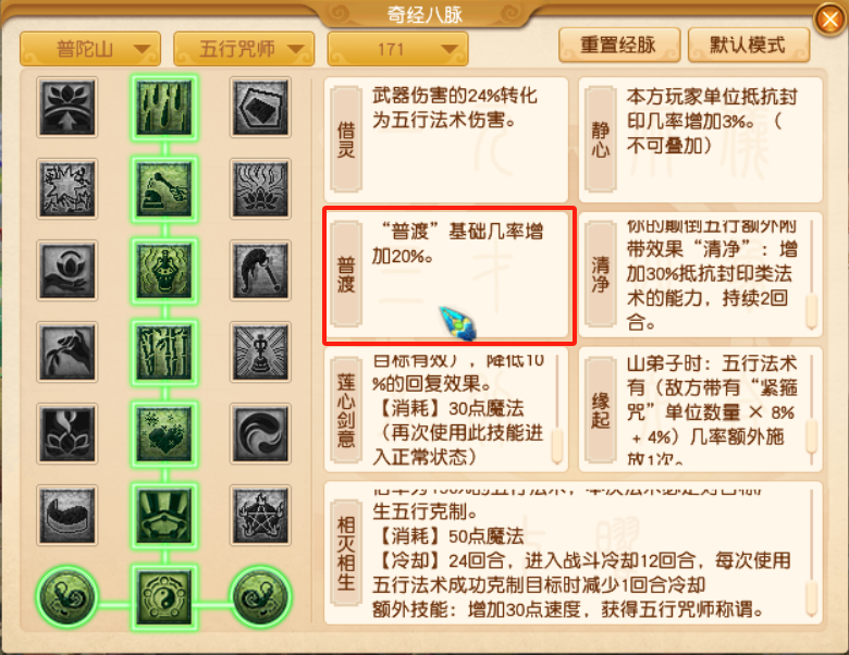 门派法宝“普渡”调整,仅限【五行咒师】流派