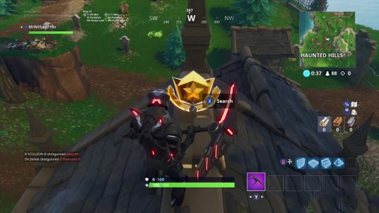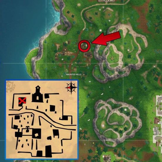 在幽灵山的鬼屋房区的右上角的房顶上。
