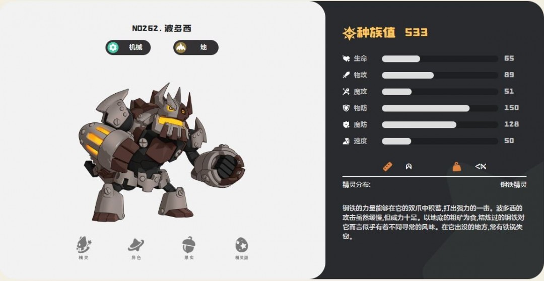 《洛克王国:世界》是由腾讯IEG魔方工作室群开发的大世界精灵收集养成战斗游戏,在游戏中有许许多多不同的宠物,每个宠物都有不同的技能,那么有不少小伙伴好奇波多西技能有哪些,下面就来告诉大家。 洛克王国世界波多西技能一览 钢铁的力量能够在它的双爪中积蓄,打出强力的一击。波多西的攻击虽然缓慢,但威力十足。以地底的粗矿为食,精炼过的钢铁对它而言似乎有着不同寻常的风味。在它出没的地方,常有铁锅失窃。 本文内容来源于互联网,如有侵权请联系删除。