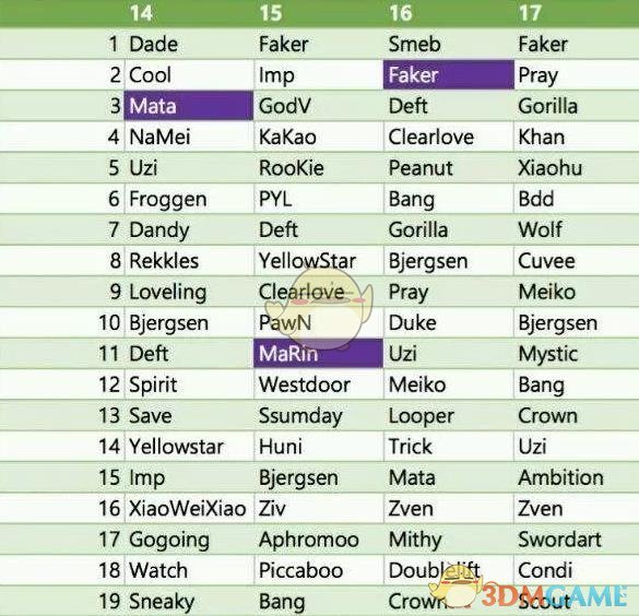 最后给大家再附上一张历届S赛拳头官方评选的20选手名单!