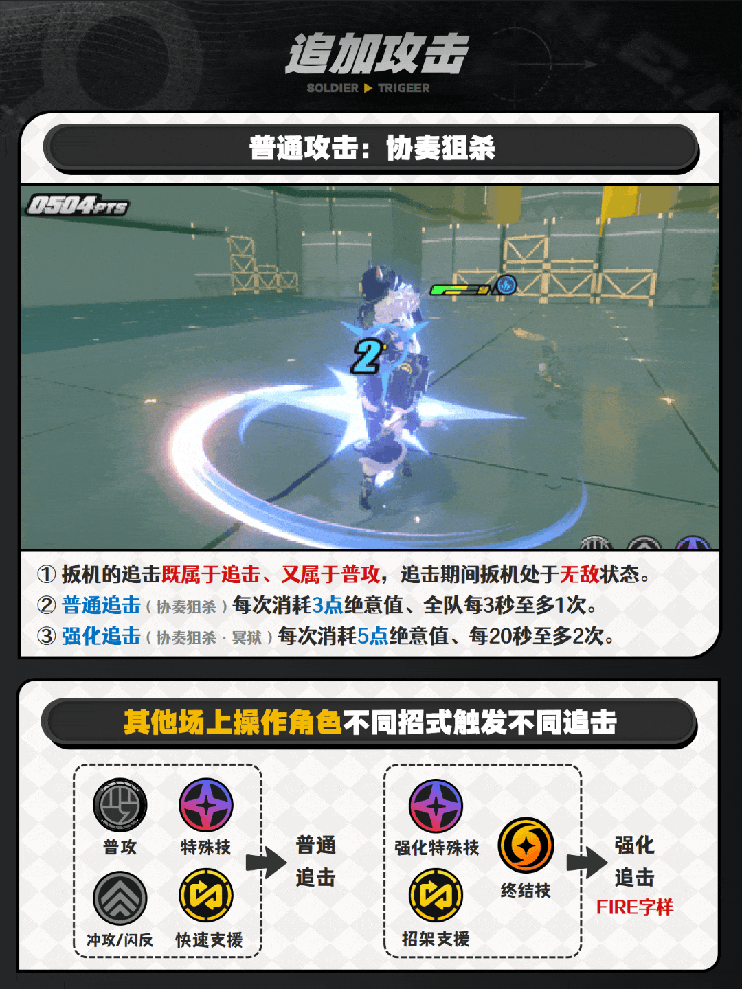 ① 扳机的追击也属于普攻,能获得【拘缚者】的失衡值提升。