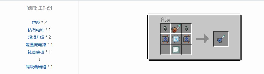 高级凿岩锤(在1.16以上名称为工业凿岩锤)是科技复兴中的顶级凿岩锤。