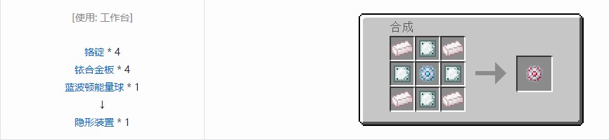 装备在胸甲栏位可以使玩家隐形,和隐身buff一样,不会隐藏装备和手持物品,距离敌对生物太近会被发现。
