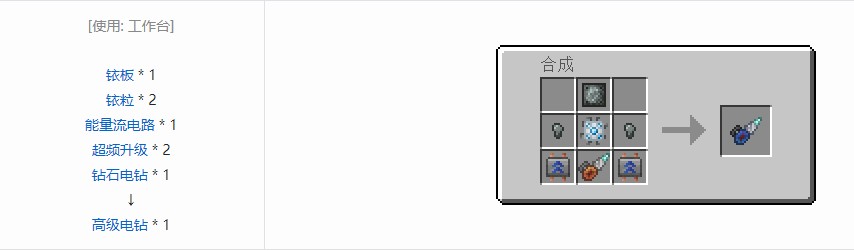 钢电钻是科技复兴(TechReborn)中的基础钻头。