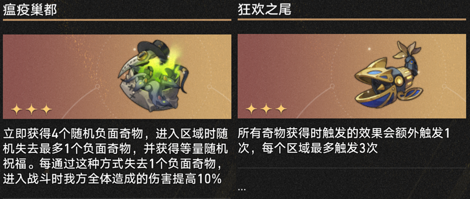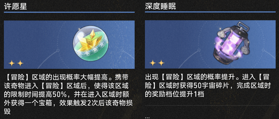 两个提供【奇遇】区域的奇物可以让你比较稳定地进入【奇遇】层,获取大量局内资源;