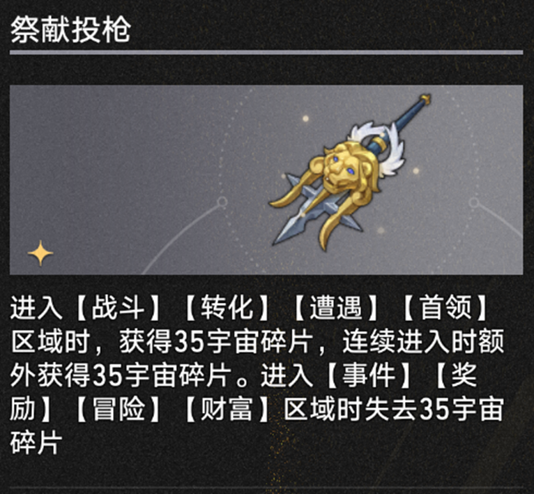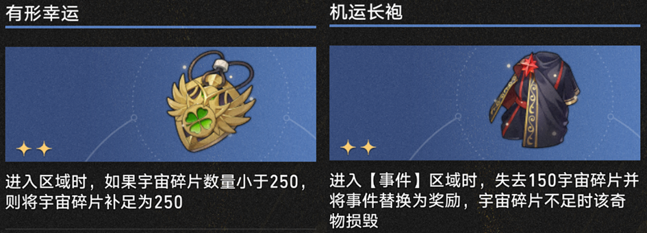 【机运长袍】则可以有效提高【奖励】事件的出现率,前提是有充足的宇宙碎片供应——例如【有形幸运】。