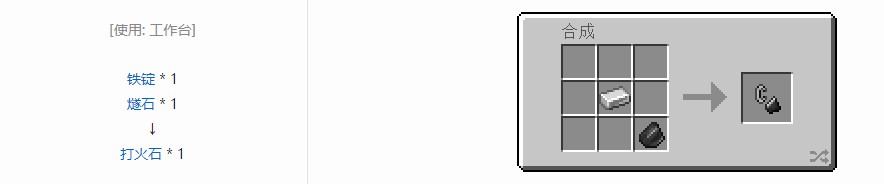 当在固体、非透明方块上面或在可燃烧方块的旁边使用,打火石会在被使用的表面生火。