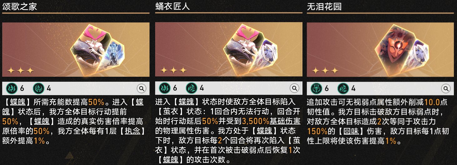剩下的一星增伤方程则主要提供击破特攻属性加成和【蝶魄】倍率加成。