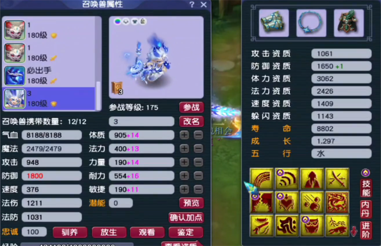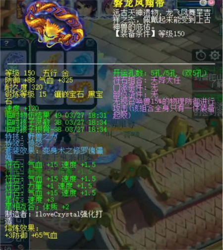 英雄少侠的后排灵饰选择了“1气血5防御”的属性组合。