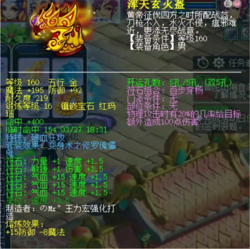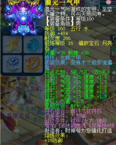 综合防御500,双加力敏76点,附加特技光辉之甲的160级铠甲。