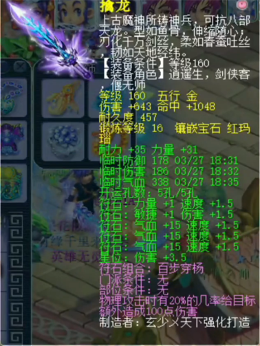 英雄少侠的前排灵饰选择了“1速度6伤害”的属性组合。