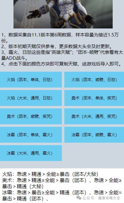 1、这个WA主要是起一个辅助作用,大头用这个系列WA测试过惩戒骑、三系潜行者、火法、冰法,都能起引领作用。进战斗后,WA会高亮,这个高亮就是技能优先推荐级。