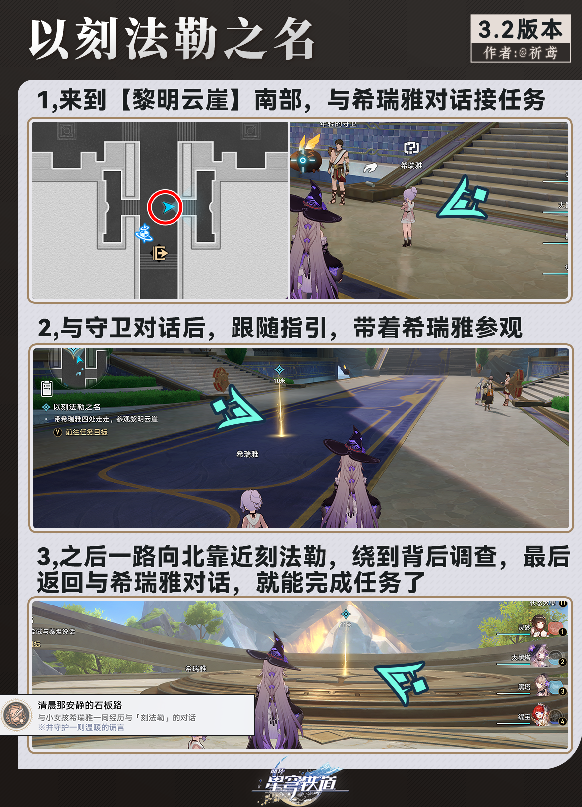 就在最近崩坏星穹铁道终于上线了3.2版本给我们带来新冒险,这次版本更新还上线了许多新内容,有新遗器,新地图,新角色,还有新任务,那么有小伙伴好奇隐藏任务以刻法勒之名任务在哪接取,下面就来告诉大家。 崩坏星穹铁道以刻法勒之名任务怎么触发 任务奖励:每个任务都有10星琼,2个残晶,以及1个成就 注意事项: (1)这些任务都需要靠近接取点,才会出现问号标识 来到【黎明云崖】南部,与希瑞雅对话接任务 本文内容来源于互联网,如有侵权请联系删除。