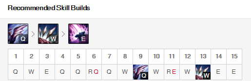 主Q副W。Q技能是卡兹克的主要爆发技能,W技能补充控制和伤害。六级进化R,十一级进化W,十六级根据实战情况考虑。