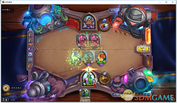 2.沟渠潜伏者吃掉对面一个哨兵,亮石技师+污手街供货商buff手中随从,最后圣光楷模+自走炮+圣光楷模(最后的顺序一定要按圣光楷模+自走炮+圣光楷模)