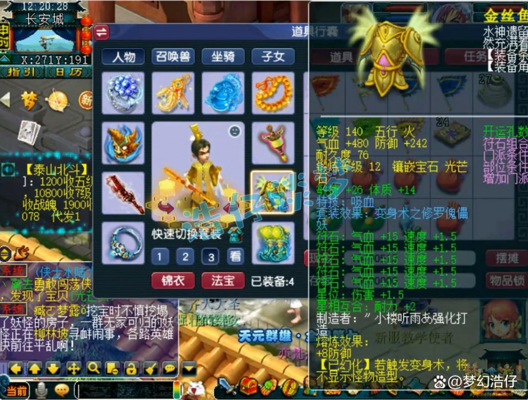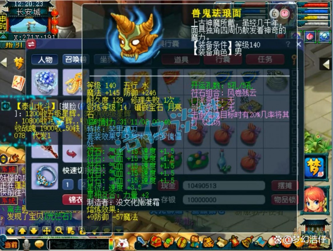140级带吸血的修罗傀儡妖套铠甲,体敏双加40,打了12锻光芒石!