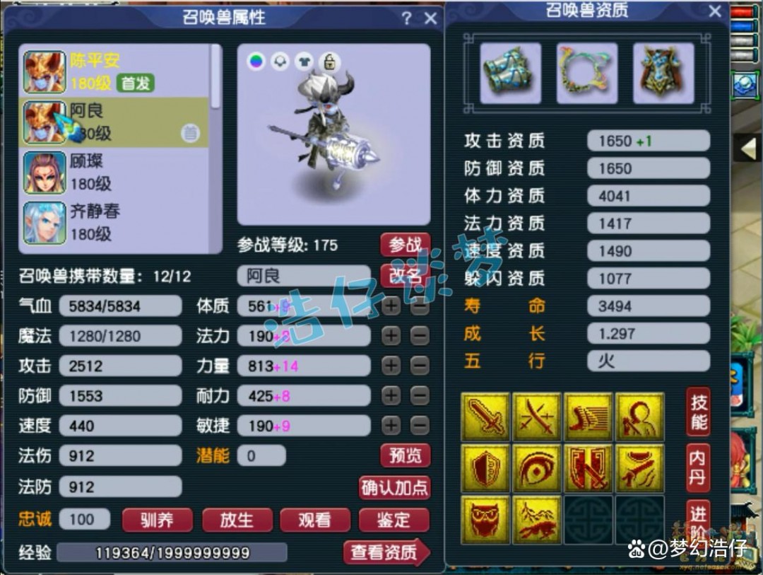 10技能耐攻壁垒童子,双资都达到了1650以上,而且速度资质也很高,很完美!