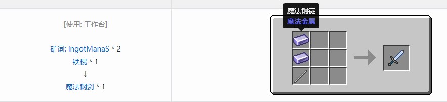 我的世界魔法金属模组剑合成方法