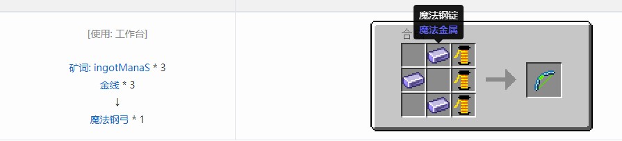 我的世界魔法金属模组弓合成方法