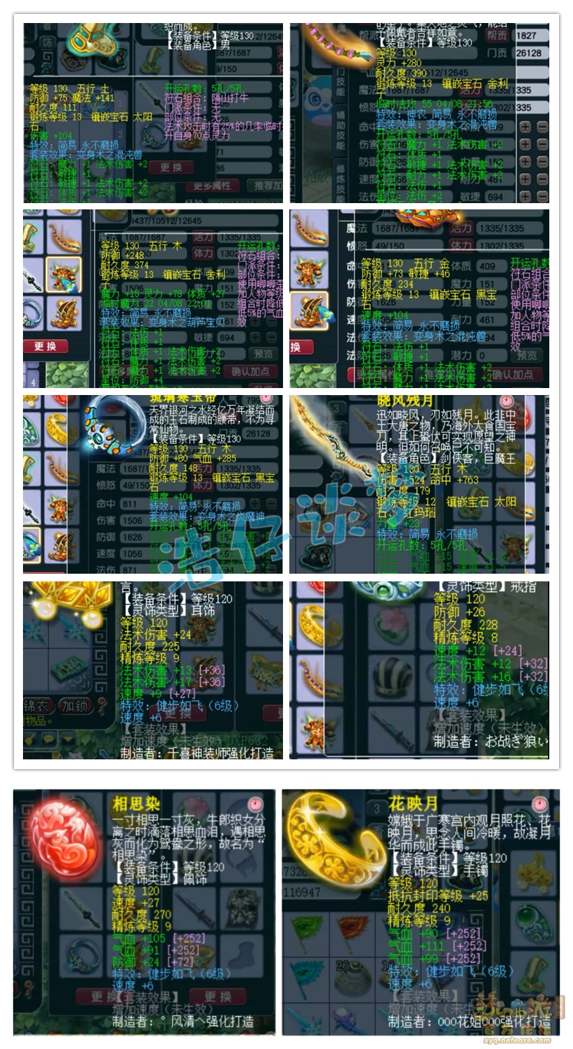戒指和耳饰下排都是双治疗一速度,佩饰和手镯下排都是双气血一法防,有几个竟然连特效都没有打,不过难度任务够用了!其实这套装备并不是今天的重点,接下来这套才是!我就不一一截图展示了,各位一起看吧!