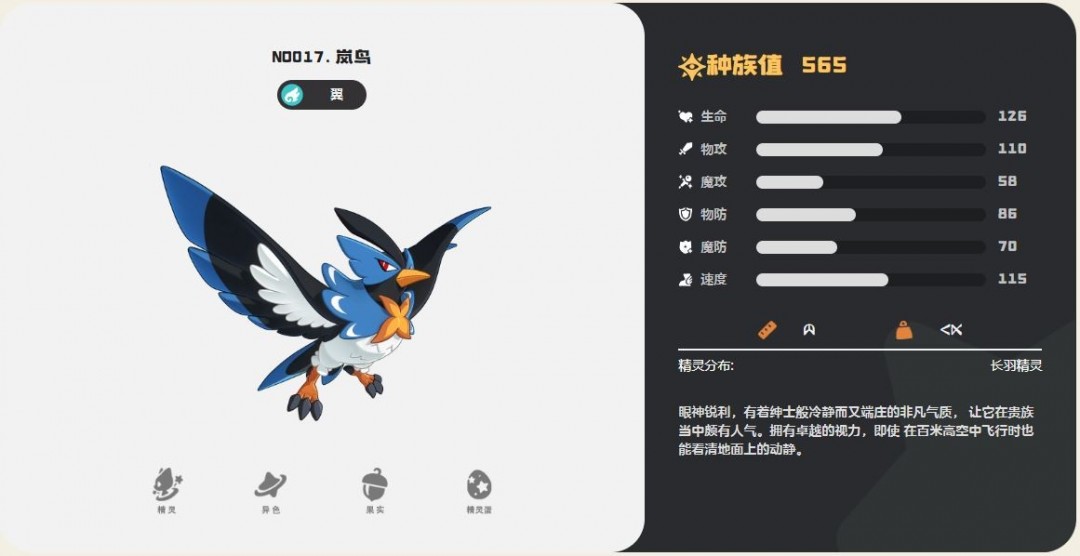 眼神锐利,有着绅士般冷静而又端庄的非凡气质, 让它在贵族当中颇有人气。拥有卓越的视力,即使 在百米高空中飞行时也能看清地面上的动静。