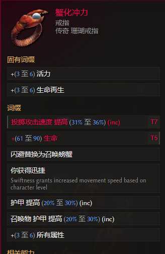戒指:除了幻化掌控1个再加个蟹化冲力 世界掉落 合成词缀优先投掷速度 其次生命或者-3魔耗