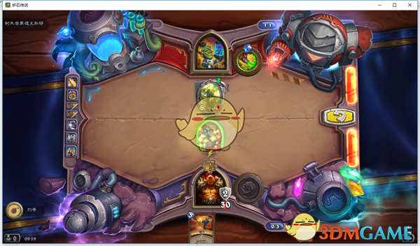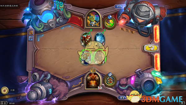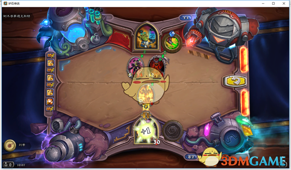 5.两张石牙野猪攻击对面随从,使用英雄技能增加两点护甲盾猛暴乱狂战士。