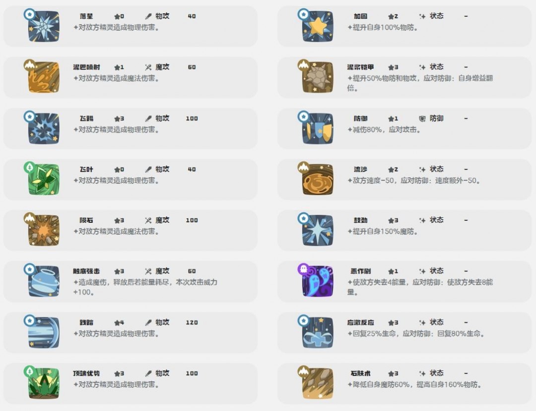 洛克王国世界记忆石技能一览