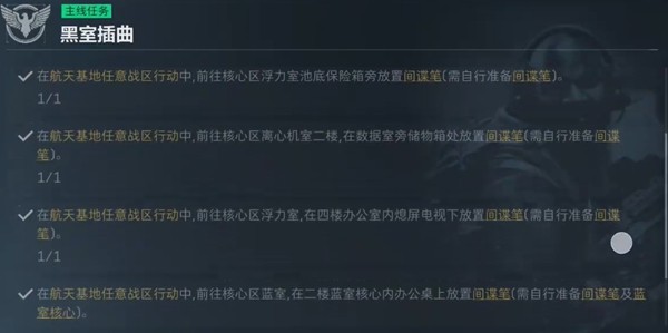 《三角洲行动》是一款设定在2035年的第一人称特战干员战术射击游戏。黑市插曲是游戏中的一个任务,需要玩家们准备四只间谍笔和蓝室核心房卡,前往指定位置提交道具,那么下面就来告诉大家黑市插曲任务怎么过。