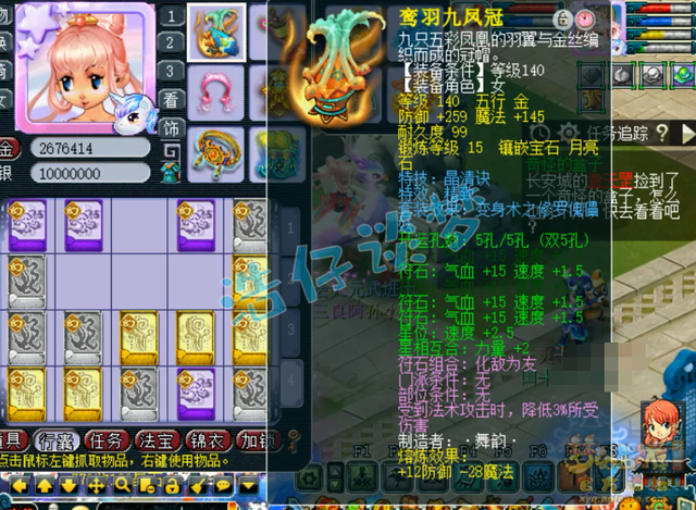 140级晶清诀精致修罗傀儡妖套女头,打了15锻月亮石。