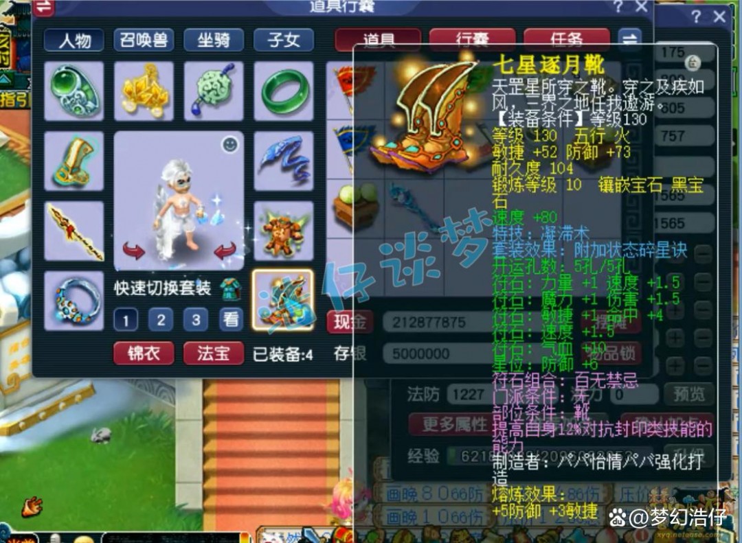 130级带凝滞术的碎星诀套鞋子,打了10锻黑宝石。