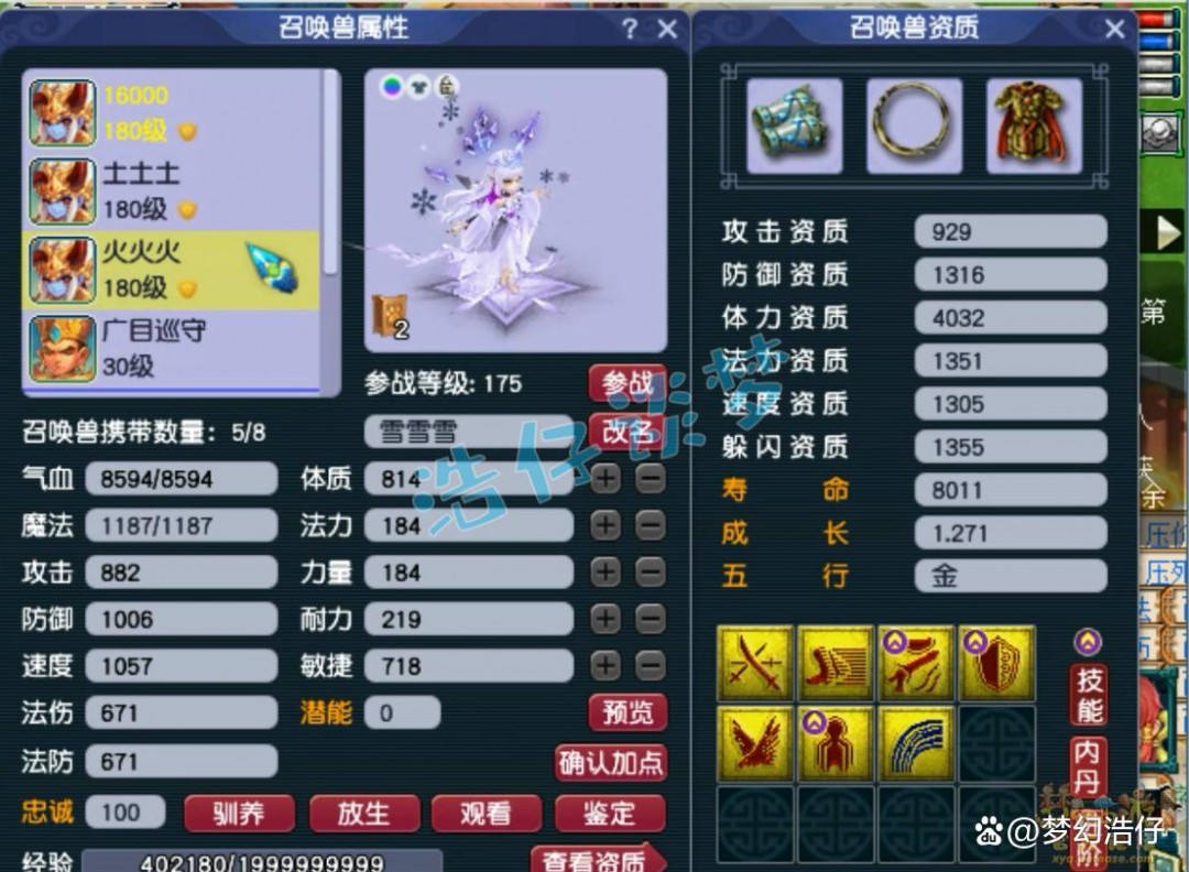 8技能敏须弥童子,套装带的是高敏,特性是顺势,普通任务用的法宠。