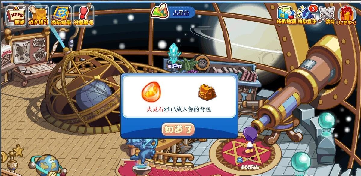 前往占星台点击那一束蓝光根据提示完成即可获得火灵石