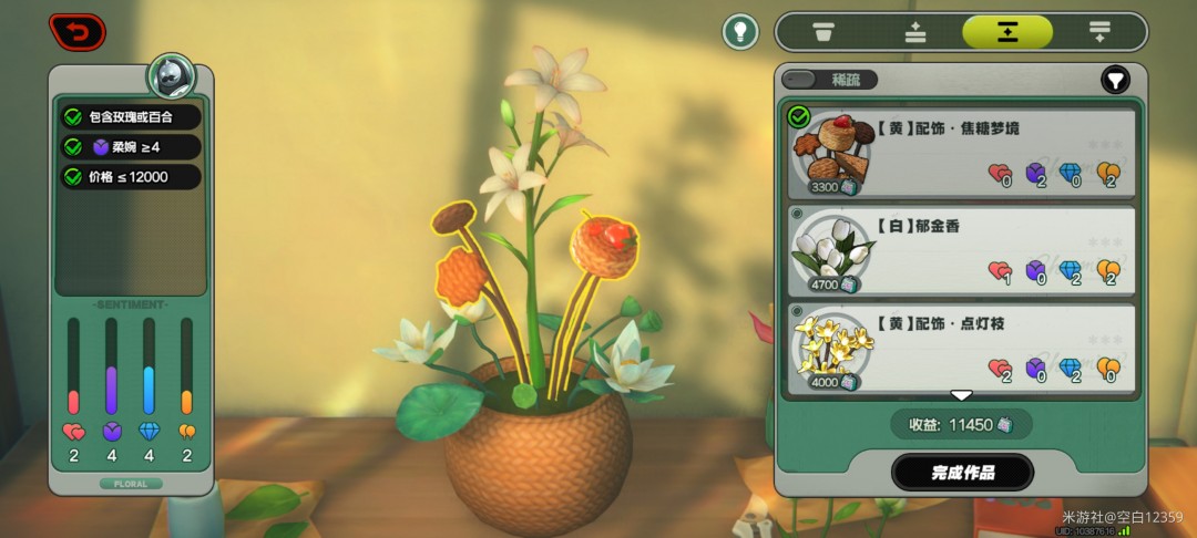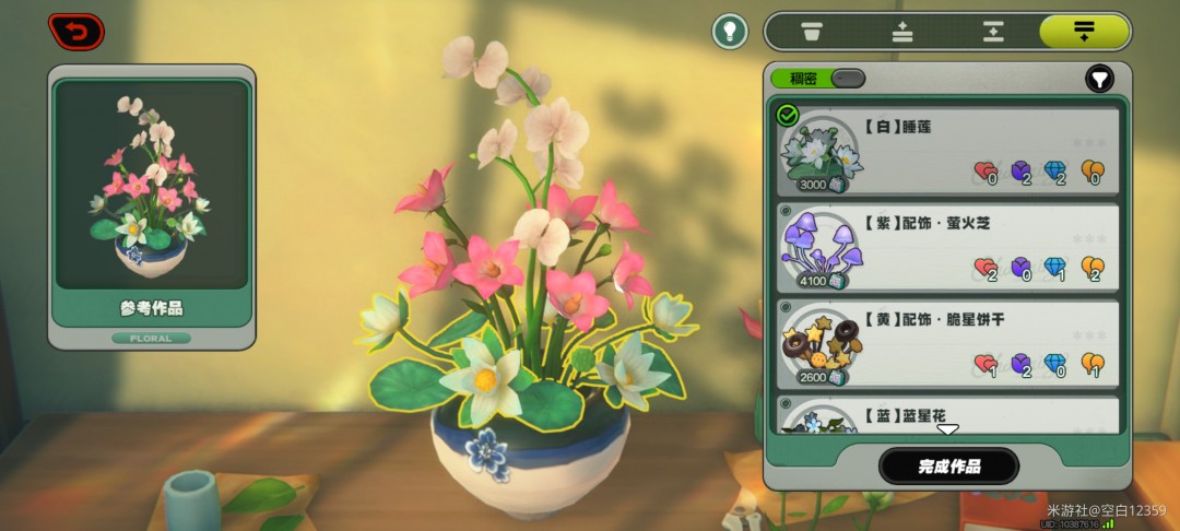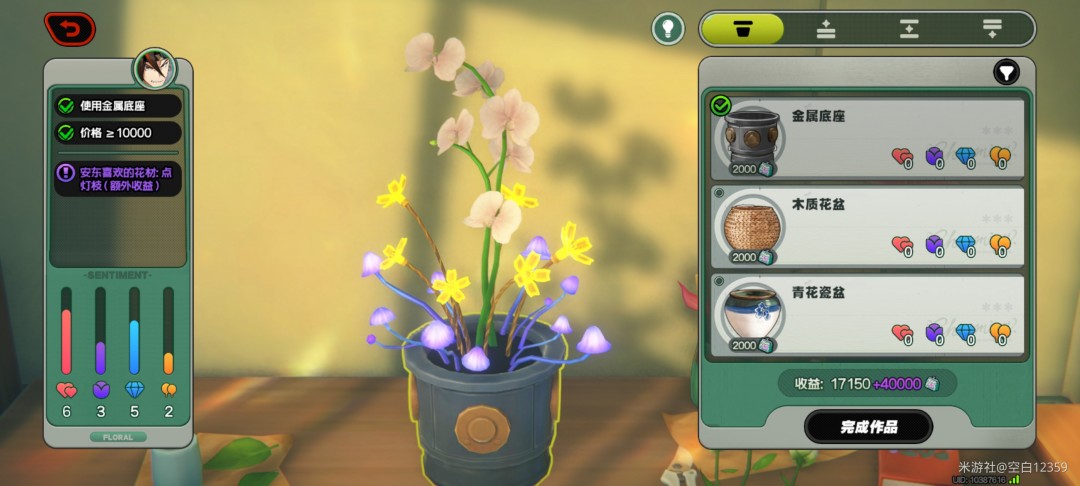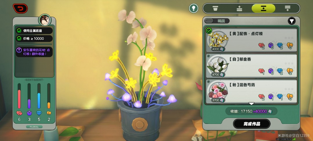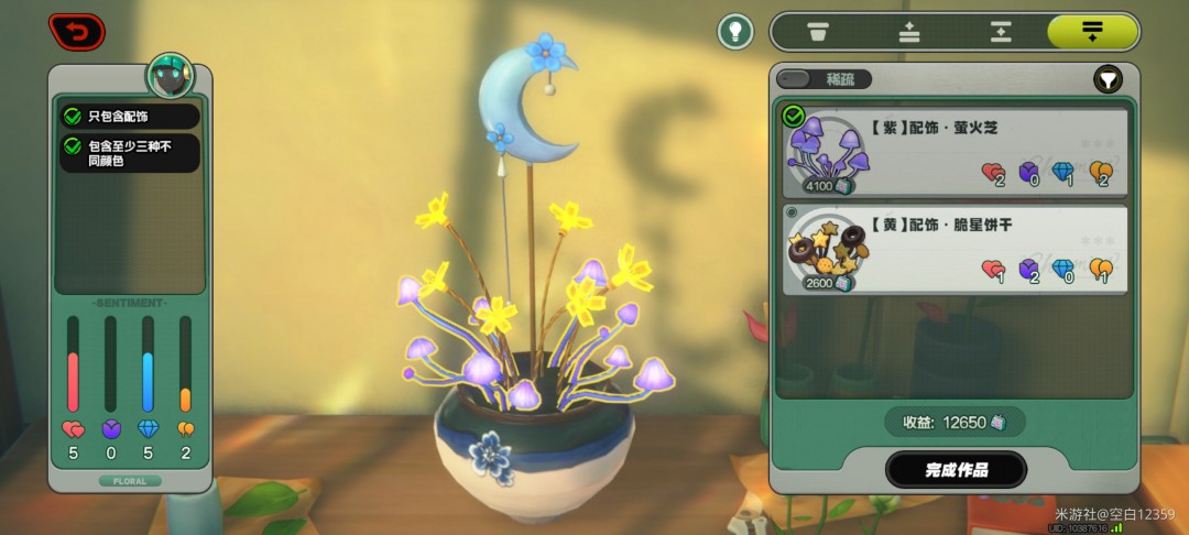 任意花盆,【蓝】月亮,【黄】点灯枝,【紫】萤火芝