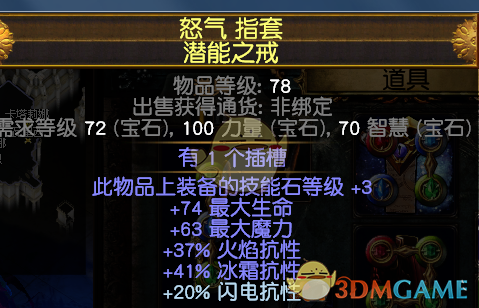 戒指2:潜能戒指 需要+3等级 生命魔力 抗性 愤怒放上面