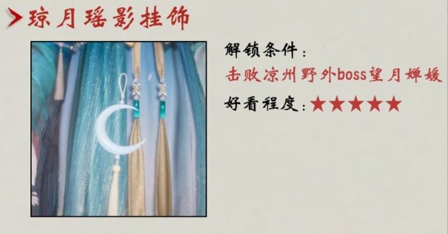 燕云十六声是一款开放世界游戏,就在最近上线了凉州地图,在凉州也有不少可以白嫖的漂亮服饰,那么有不少小伙伴好奇琼月瑶影挂饰怎么获得,下面就来告诉大家琼月瑶影挂饰获取攻略。 燕云十六声琼月瑶影挂饰怎么获得 琼月瑶影挂饰 解锁条件 : 击败凉州野外boss望月婵媛 本文内容来源于互联网,如有侵权请联系删除。