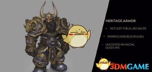 想穿上祖传的战袍,在艾泽拉斯大陆上招摇过市吗?8.1版本传承护甲系统将向更多种族开放!首批开放的种族为矮人和血精灵,只要你达到满级,并且对自己的种族声望崇拜,完成一系列史诗任务,就能解锁帅气的传承护甲啦!
