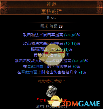 这个戒指很符合我们,他给的奉献地面时在自己脚下生成的,而不是怪那边。还有格挡率。奉献地面给我们再加 4% 每秒生命回复,配合光环天赋我们有 12%+ 以上秒回!