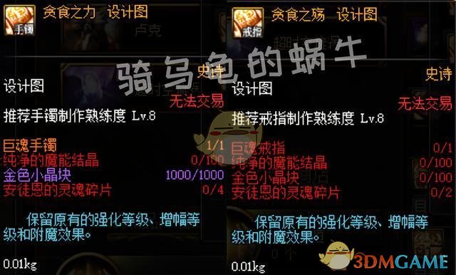 巨魂首饰升级贪食系列所需的材料也大大减少!改版后只需要2颗红豆就能升级,金色小晶块也从1000个降到了100个,简直是为平民玩家量身定做!
