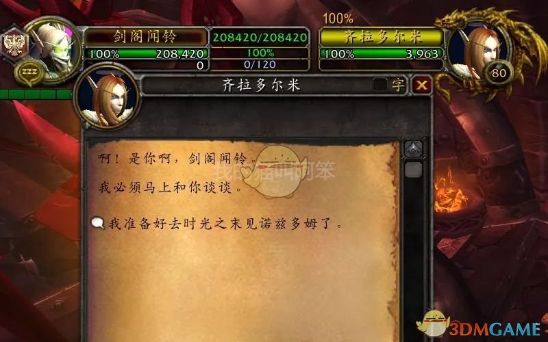 方案二:橙杖持有者的特权 拥有大地的裂变版本橙杖“巨龙之怒,泰蕾苟萨的寄魂杖”的法爷们,你们的春天来了! 在同样的NPC处接任务“传奇的邀请”,然后和NPC对话,直接传送到时光之穴的阿纳克洛斯面前!