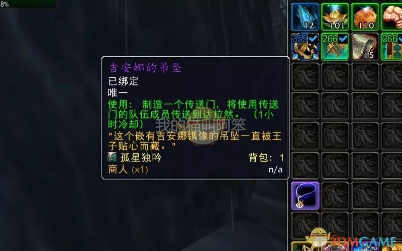 方案二:吉安娜的吊坠 橙斧任务奖励的玩具吉安娜的吊坠,可以开启达拉然的传送门。 但是,拍卖行价格略贵,土豪随意。