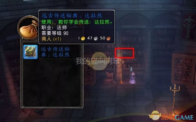 然后,去老达拉然巫术姐妹里找NPC恩多拉·莫尔海德(就是卖一堆法师玩具的那个),他会限量出售远古传送门的法术书! 记住,限量供应,手慢无!