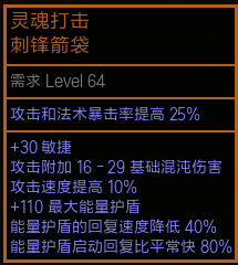 长老项链,致密点出身体能量护盾提高16%。由于大CI衣服基础护盾太低,POB模拟出提高不大,不要也可。