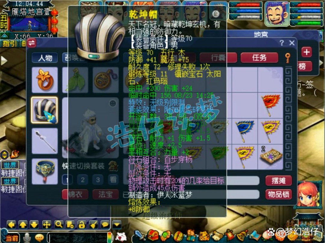 70级无级别碎星诀套男头,镶嵌了8颗红玛瑙和3颗太阳石!这头,顶的可不是一般的装备,是人民币玩家的尊严啊!