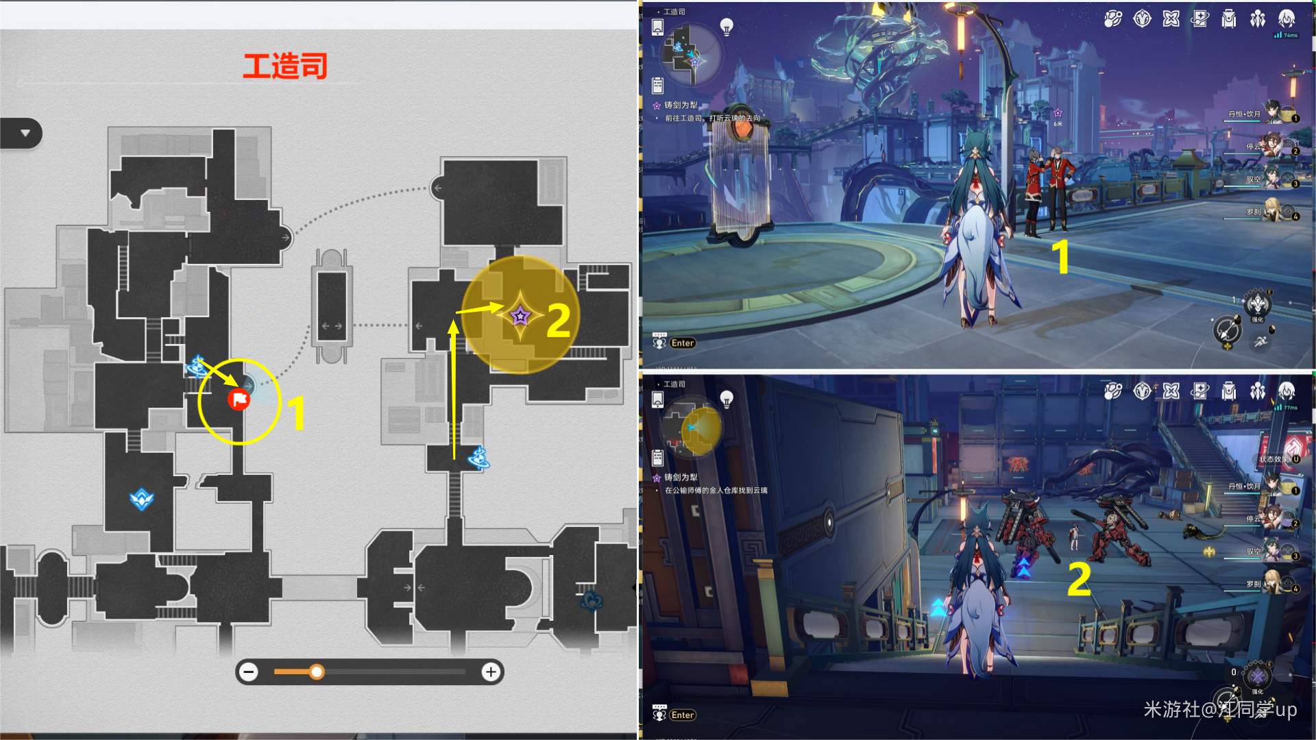 5. 第五站:工造司,剧情推进,真相只有一个! 前往工造司的1号和2号地点,继续和NPC们对话,推进剧情发展。