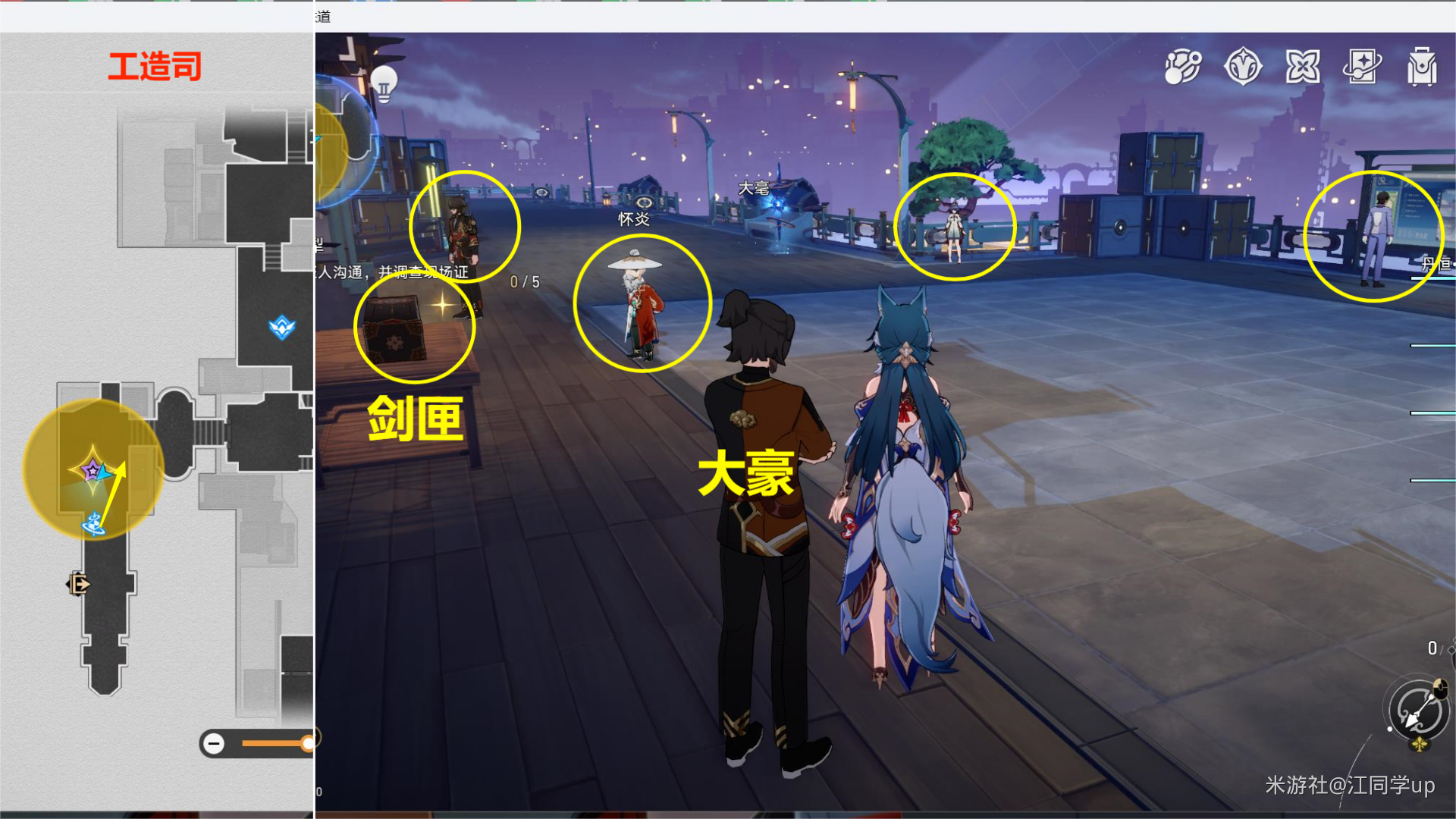 7. 第七站:工造司,化身侦探,寻找蛛丝马迹! 再次回到工造司,找到大豪,对话后开启侦探模式!你需要调查获得5个证物:和周围4个人对话,每人提供1个,然后调查桌子上的剑匣,获得关键证物——玫瑰花瓣!