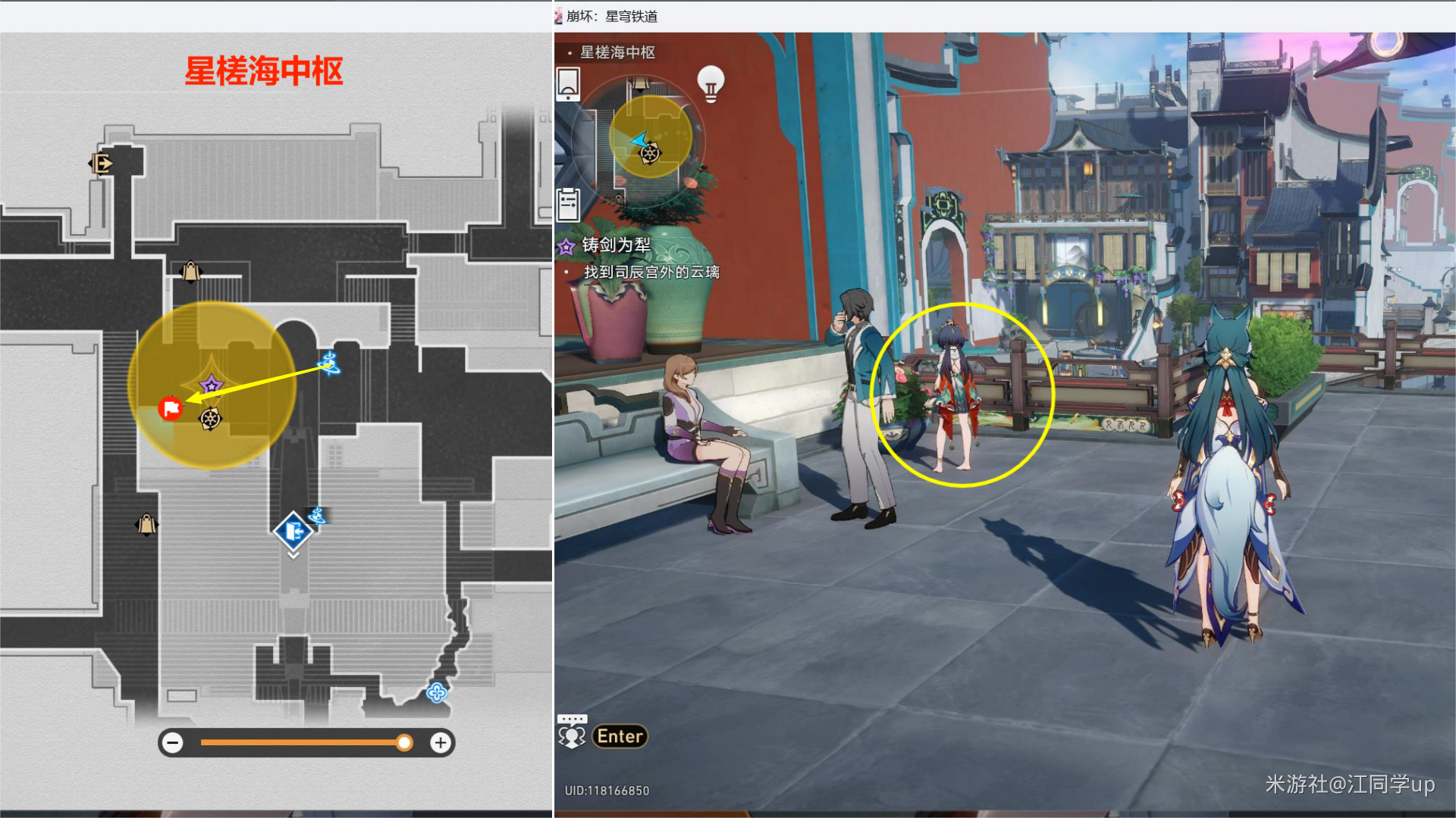 4. 第四站:星槎海中枢,再见云璃,她怎么总在这儿? 出了司辰宫,再次回到星槎海中枢,找到云璃(感觉她承包了这里的KPI),继续对话。
