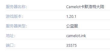 哟,各位冒险家们,准备好迎接新的挑战了吗?今天老司机要带你们飞向一个充满魔幻色彩的服务器——Camelot卡默洛特大陆!想知道通往这个神秘世界的传送门(也就是IP地址)?别急,待我慢慢道来。